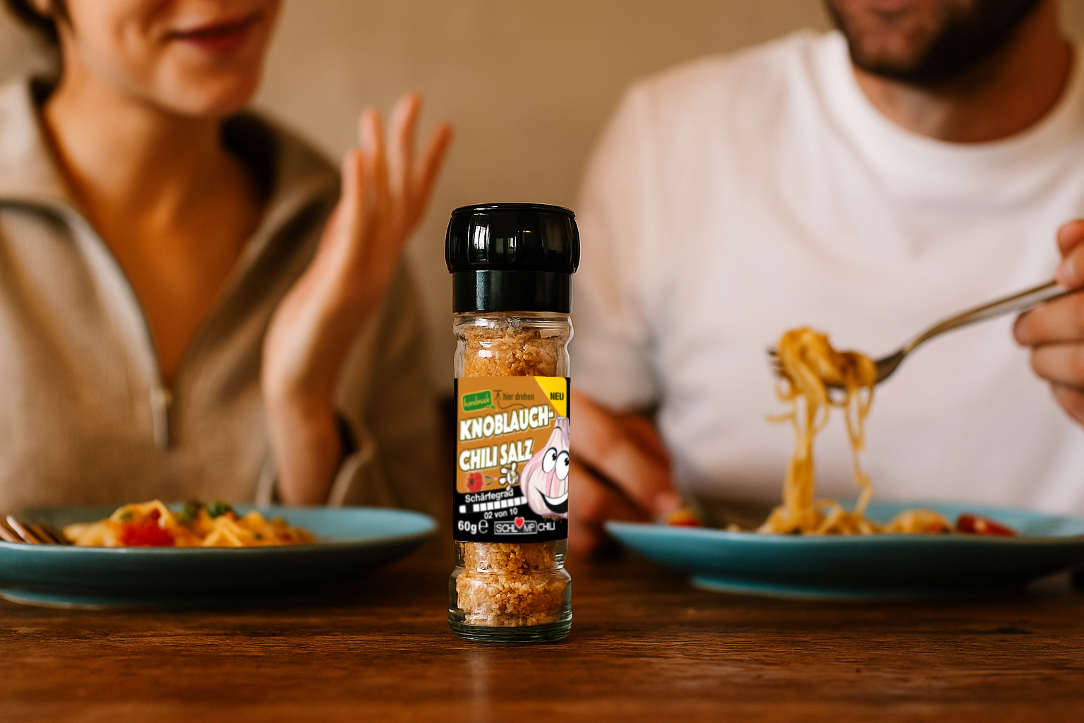 Gib deinen Gerichten einen Kick mit unserem Dreierpack DER KNOBOLD Knoblauch-Chilisalz Gewürzmühle. Genieße die hausgemachte Mischung aus Salz, Habanero Chili und Knoblauch für ein unvergleichliches Geschmackserlebnis. Jetzt mit 3 Mühlen für noch mehr Würze! Hol' dir unseren Dreierpack!